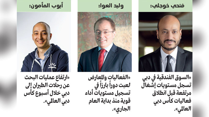 وذكروا لـ«الإمارات اليوم» أن الفعاليات الكبرى التي تستضيفها دبي، على غرار أمسية «كأس دبي العالمي» المقررة بمضمار ميدان في 25 الشهر الجاري، لها دور بارز في دعم السوق الفندقية في دبي، إضافة إلى حجوزات الطيران، مشيرين إلى أن الإمارة تمتلك مقومات استثنائية في استضافة الفعاليات الكبرى التي تسهم في تعزيز معدلات التدفق السياحي.