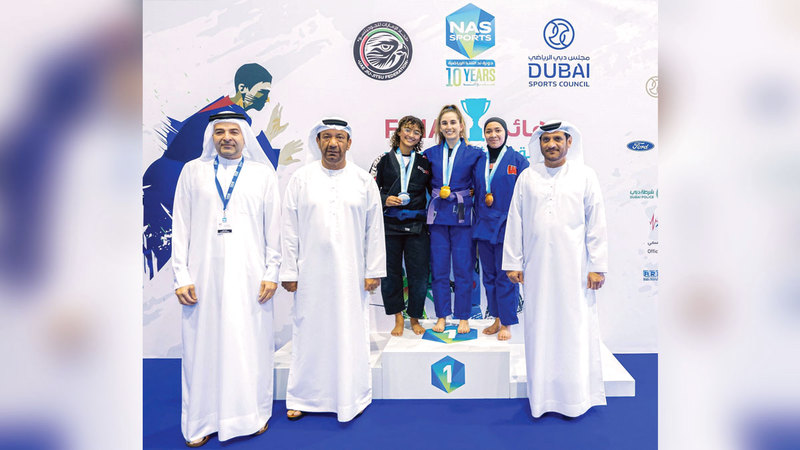وتوج الفائزين مساعد أمين عام مجلس دبي الرياضي نائب رئيس اللجنة المنظمة لدورة ند الشبا، ناصر أمان آل رحمة، ونائب رئيس اتحاد الجوجيتسو، محمد سالم الظاهري، وعضو مجلس إدارة الاتحاد، يوسف البطران، ومدير إدارة الدعم المؤسسي بمجلس دبي عضو اللجنة المنظمة لدورة ند الشبا صالح المرزوقي.