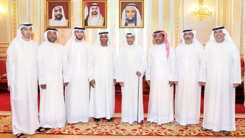 حاكم الفجيرة خلال استقباله لمجلس إدارة اتحاد كرة اليد. من المصدر