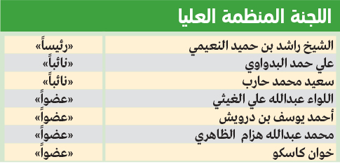 شكّل مجلس إدارة اتحاد كرة القدم اللجنة المنظمة العليا لبطولة كأس العالم لكرة القدم الشاطئية، برئاسة الشيخ راشد بن حميد النعيمي، رئيس الاتحاد، وعضو مجلس الإدارة، علي حمد «نائباً»، والأمين العام لمجلس دبي الرياضي، سعيد حارب «نائباً»، وعضوية رئيس لجنة الفعاليات بالقيادة العامة لشرطة دبي، اللواء عبدالله الغيثي، وعضو مجلس الإدارة، أحمد بن درويش، والأمين العام لاتحاد الكرة، محمد الظاهري، ورئيس اللجنة التنفيذية لكرة القدم الشاطئية بـ«الفيفا»، خوان كاسكو.