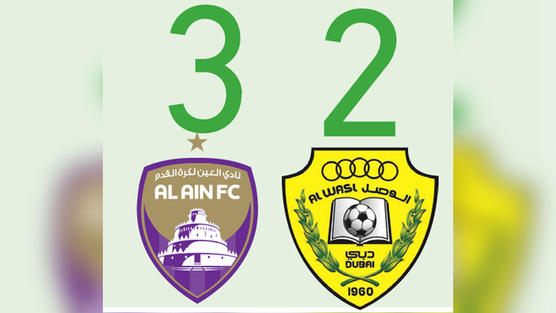 وأحرز بندر الأحبابي الهدف الأول من تسديدة قوية دخلت المرمى (52)، قبل أن يضيف الأحبابي الهدف الثاني بطريقة رائعة من ركلة حرة مباشرة (72)، وفي الدقيقة 87 حصل الوصل على ركلة جزاء أحرزها فابيو ليما ورد البرازيلي جوناثان بإحراز الهدف الثالث لـ«الزعيم» في الدقيقة 12 من الوقت بدل الضائع لتنتهي المباراة بفوز العين.