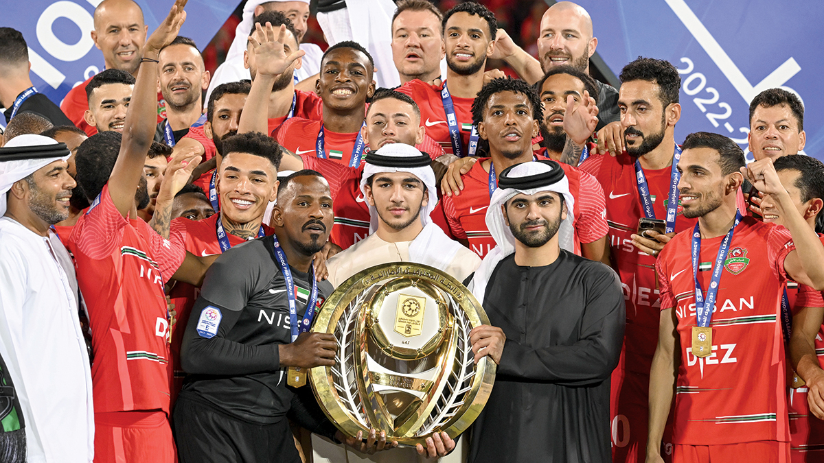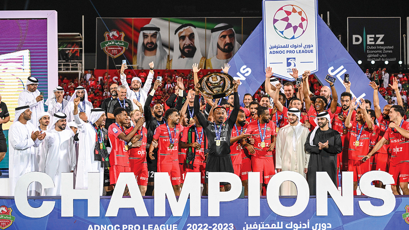 ودوّى «الونان» بصوته الشهير باستاد راشد في دبي، وعلت أصوات الجماهير بالتصفيق والهتافات في المدرجات، وارتسمت البسمة على وجوه اللاعبين ومدربهم البلجيكي ليوناردو جارديم في منصة التتويج، خلال رفع قائد الفريق ماجد ناصر درع البطولة، بعد حفل شارك في إحيائه الفنان حسين الجسمي الذي تغنى بأبطال شباب الأهلي وحملت أغنيته الخاصة بالاحتفالية عنوان: «فرسان دبي.. الشجعان الأبطال».