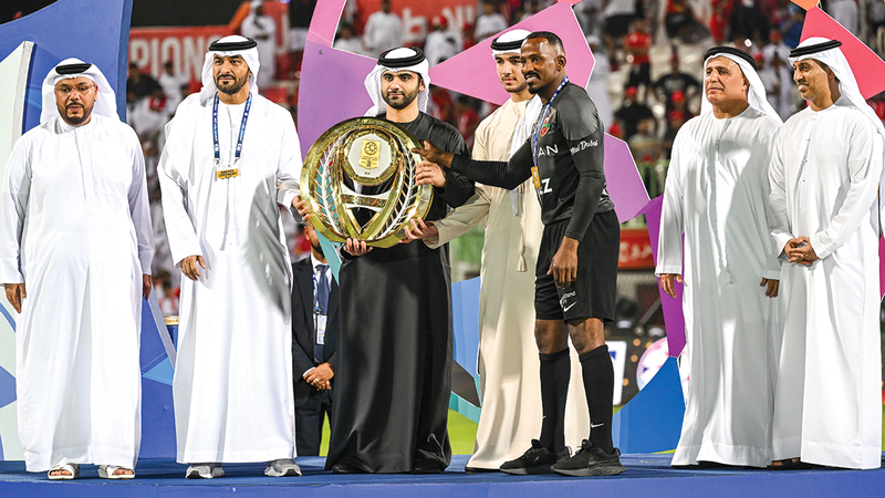 وسلّم سمو الشيخ منصور بن محمد بن راشد آل مكتوم، درع الدوري إلى قائد الفريق ماجد ناصر، بحضور الشيخ محمد بن راشد بن محمد بن راشد آل مكتوم، والنائب الأول لرئيس اتحاد كرة القدم رئيس رابطة المحترفين ناصر الجنيبي.