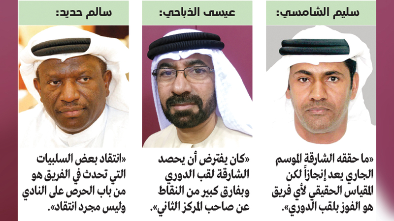 وقالوا لـ«الإمارات اليوم»: «رغم أن الشارقة فاز أخيراً بلقب كأس رئيس الدولة للمرة الثانية على التوالي وهو يعد أغلى البطولات المحلية إلا أن المقياس الحقيقي لأي فريق ومدرب ولاعبين هو الفوز بلقب الدوري».