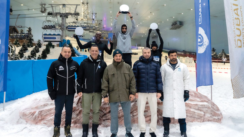 وفي ختام السباق، قام سعيد حارب، أمين عام مجلس دبي الرياضي، بتتويج الفائزين بالمراكز الأولى، بحضور ناصر أمان آل رحمة، مساعد أمين عام المجلس، وإيجنيس لحود، الرئيس التنفيذي لمجموعة ماجد الفطيم للتسلية والترفيه والسينما، ومحمد العطري، نائب رئيس مشاريع الثلج العالمية في المجموعة.