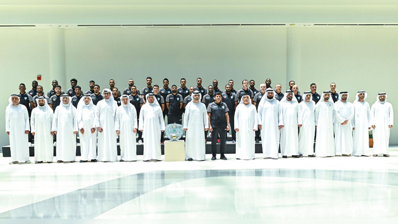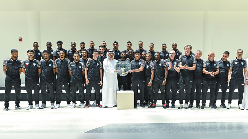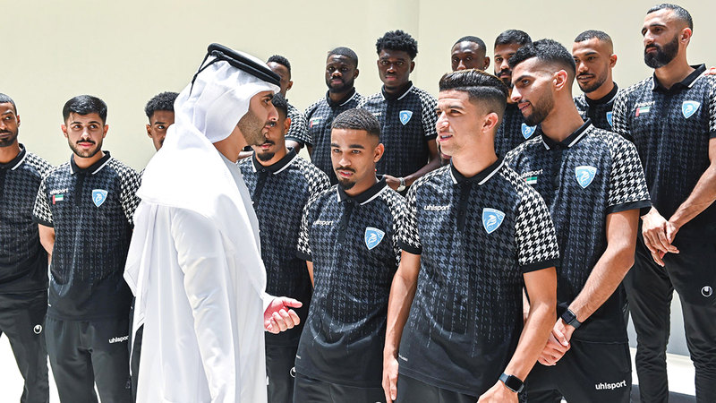 منصور بن محمد يستقبل فريق حتا بطل دوري الدرجة الأولى