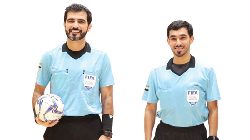 الحكمان الدوليان فهد الحوسني وأحمد الغيص. من المصدر