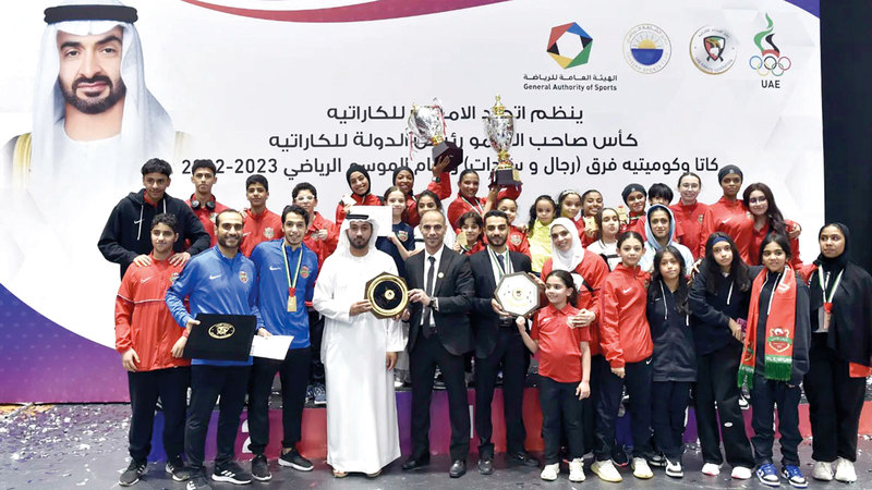 وتوجه رئيس الاتحادين الإماراتي والآسيوي والنائب الأول لرئيس الاتحاد الدولي، اللواء ناصر الرزوقي، يصحبه رئيس اتحاد الكاراتيه في إيران محمد طبطبائي، ونائب رئيس اتحاد الكاراتيه في كازاخستان حسين سيسرمبايف، وعضو مجلس إدارة نادي الشارقة رئيس مجلس إدارة الألعاب الفردية المهندس سليمان الهاجري، وأعضاء اتحاد الإمارات، بتتويج أبطال وبطلات الكأس ودرع التفوق العام والمميزين من الأجهزة الفنية.