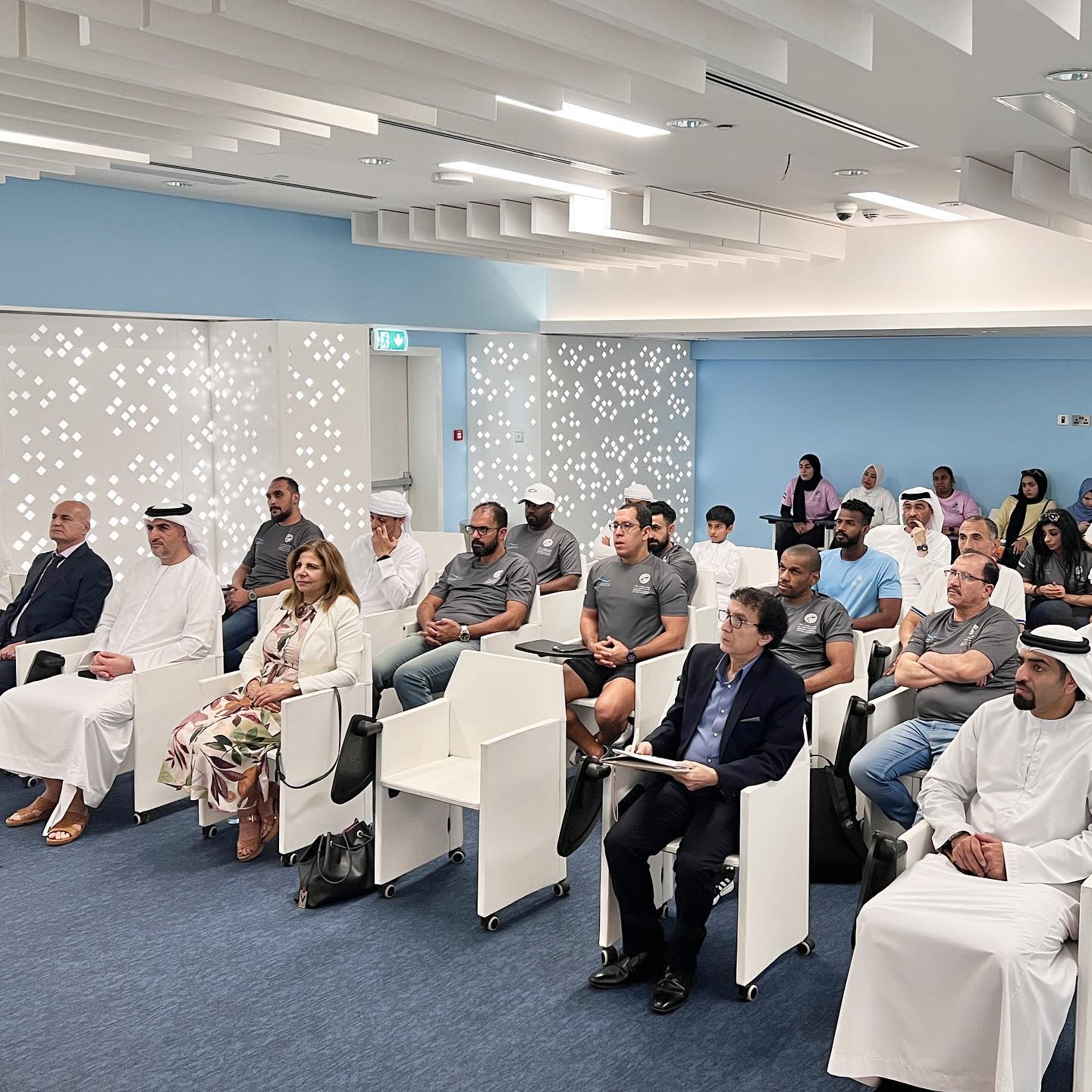 وأقيمت الندوة بالمركز الرياضي لمدينة محمد بن زايد بأبوظبي، حيث افتتح الندوة حميد الهوتي رئيس مجلس إدارة نادي ابوظبي للرياضات المائية بحضور عدد من المهتمين بقطاع الألعاب المائية من مدربين نادي أبو ظبي للرياضات المائية، معلمي التربية الرياضية بمؤسسة الامارات للتعليم المدرسي، ومجلس أبوظبي الرياضي ومركز مدينة محمد بن زايد الرياضي.