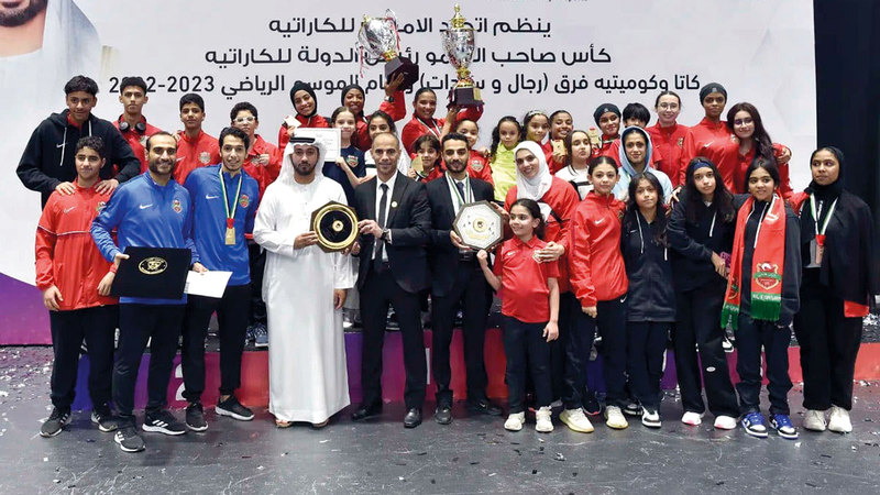 وكذلك الحال بالنسبة لفريق الكاراتيه الذي واصل عروضه المبهرة وحقق الإنجازات محلياً وخارجياً، واستطاع تحقيق 42 ميدالية ذهبية، و24 فضية، و38 برونزية، وأربع كؤوس، و10 دروع، ودرع التفوق العام للموسم، حيث كسب بطولات الدوري العام للكوميتيه لكل الفئات، وكأس رئيس الدولة للكاتا والكوميتيه سيدات، وبطولة نجوم المستقبل لكل الفئات، وبطولة الإمارات المفتوحة للكوميتيه (فتيات وناشئون وآنسات وسيدات)، وبطولة الإمارات المفتوحة للكوميتيه (شباب وأشبال)، والمركز الأول في بطولة كأس عمر بن حيدر للكوميتيه.