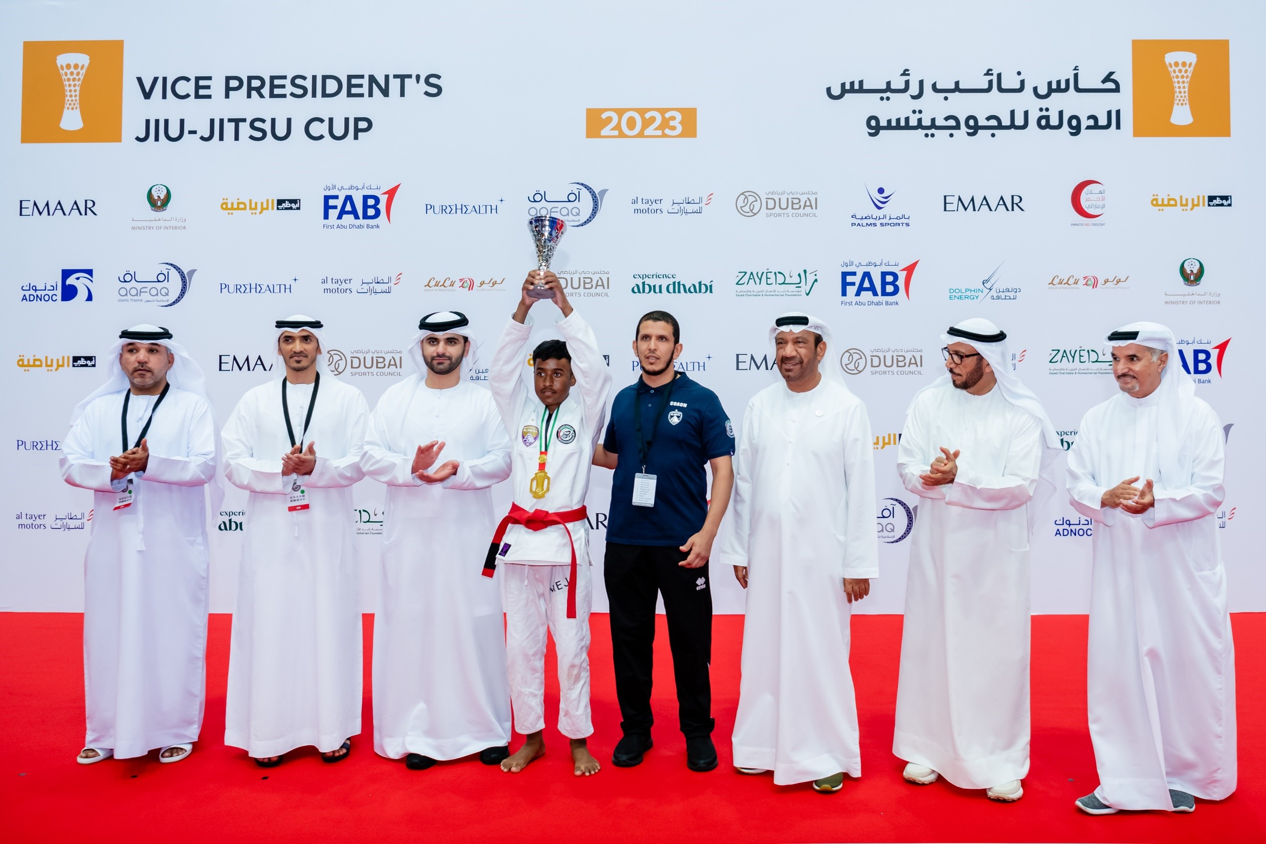 وجرت مراسم تتويج الفائزين باللقب وبالمراكز الثلاثة الأولى، بحضور رئيس مجلس إدارة قطاع الألعاب الرياضية بنادي شباب الأهلي الفريق محمد أحمد المري، ونائب رئيس اتحاد الامارات للجوجيتسو محمد الظاهري، والأمين العام لمجلس دبي الرياضي سعيد حارب، ونائب رئيس مجلس إدارة قطاع الألعاب الرياضية بنادي شباب الأهلي اللواء طلال أحمد الشنقيطي، وعضو مجلس إدارة اتحاد الإمارات للجوجيتسو يوسف البطران، والأمين العام لاتحاد الجوجيتسو فهد علي، وعدد من ممثلي الاتحاد والشركاء والأندية.