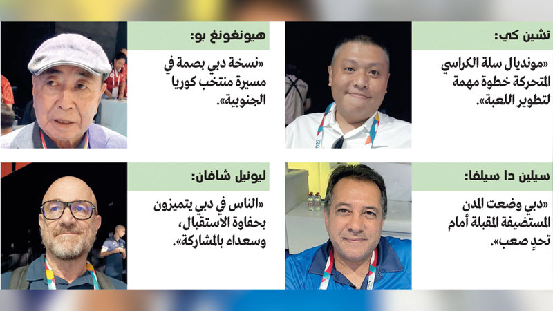 من جهته، أكد رئيس بعثة المنتخب البرازيلي، سيلين دا سيلفا سانتوس، أن دبي وضعت المدن والدول المستضيفة المقبلة أمام تحدٍ صعب بعد هذا النجاح التنظيمي الكبير والرائع، مبيناً أن نسخة 2022 تختلف عن بقية النسخ بكل المقاييس، وقال: «لقد استعدت دبي بشكل جيد لإظهار هذا التميز من خلال تجهيز ملاعب بمعايير عالمية وعالية الجودة، وجعلت كل لاعب يقدم أفضل ما عنده».