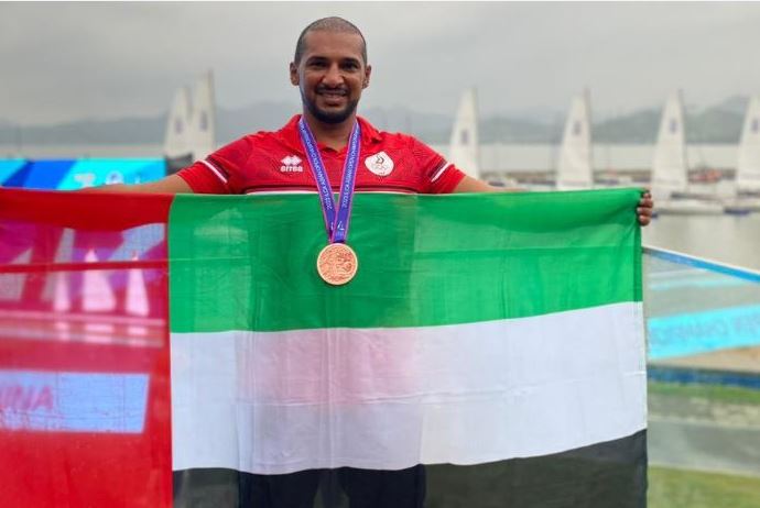 وأشاد رئيس اتحاد الإمارات للشراع والتجديف الحديث بعطاء بطلنا عادل خالد والذي حقق الكثير من الانجازات على الصعيدين العالمي والاقليمي مؤخرا حيث نجح في الحصول على 3 ميداليات عالمية هي برونزية وفضية العالم ألكا 7 ماسترز 2022 و2023 وبرونزية العالم ألكا 6 عام 2023 ليحقق إنجازا جديدا بالحصول على الميدالية البرونزية في المشاركة الآسيوية الاخيرة.