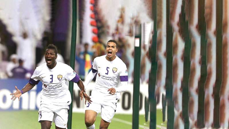 الغاني أسامواه جيان (يسار) سجل 95 هدفاً للعين في بطولة الدوري. تصوير: إريك أرازاس