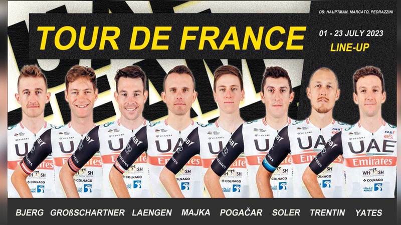 كشف فريق الإمارات عن قائمة الفريق المتوجه إلى سباق طواف فرنسا، الذي يُقام في الفترة من 1 إلى 23 يوليو المقبل في مدينة بلباو الإسبانية.