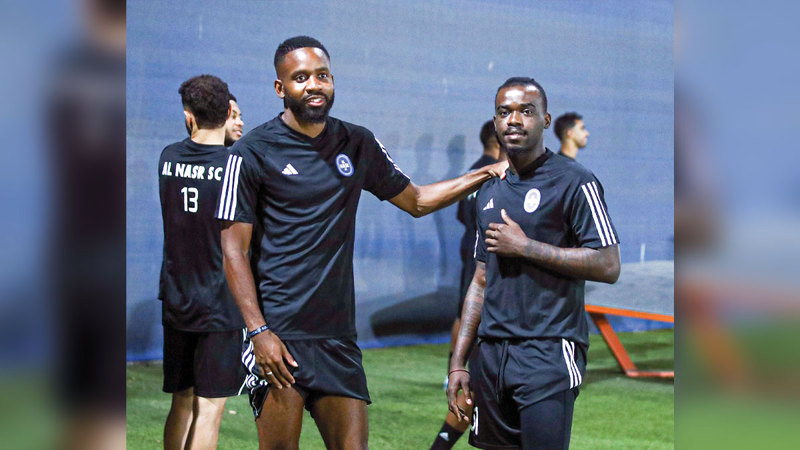 الكونغولي سيدريك باكامبو خلال وجوده في تدريبات النصر أمس في دبي. À من المصدر