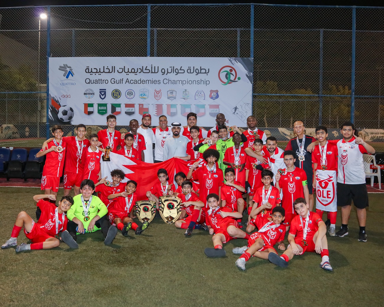 توج الشيخ عبدالله بن ماجد النعيمي مدير مكتب شؤون المواطنين في عجمان أكاديمية أوليه البحرينية لفئتي 12 سنة و14 سنة بطلاً للنسخة السادسة من مهرجان كواترو الخليجية للأكاديميات الكروية التي استضافتها عجمان في ملاعب مركز كواترو بمنطقة مشيرف خلال الأسبوع الماضي برعاية سمو الشيخ عبدالعزيز النعيمي رئيس دائرة التنمية السياحية في عجمان.