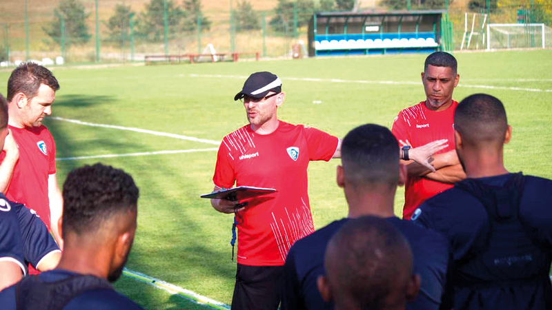 لاعبو حتا يستمعون لتعليمات المدرب. من المصدر