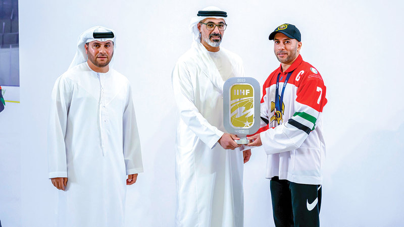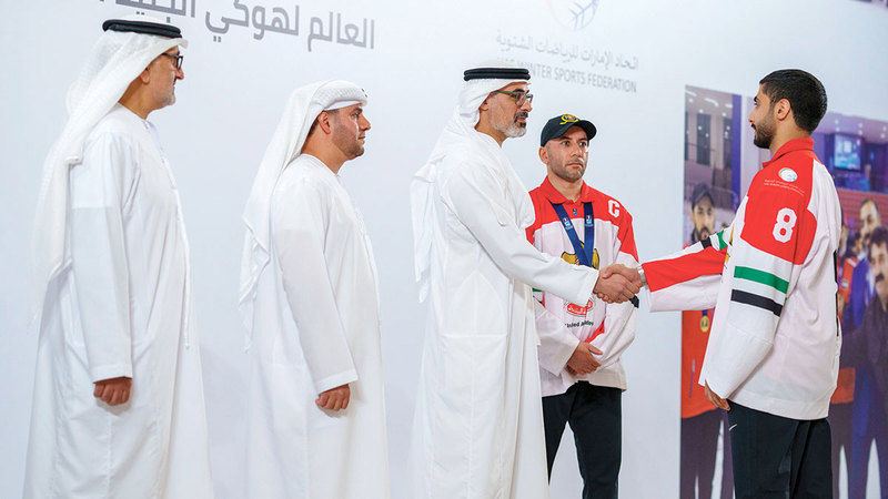 وهنأ سموّه المنتخب الوطني لهوكي الجليد على ظهوره المشرف وتحقيق بطولة كأس العالم، مؤكداً أهمية الاستمرار في بذل المزيد من الجهد لرفع اسم الدولة عالياً خلال المشاركات المقبلة في المحافل الدولية كافة.