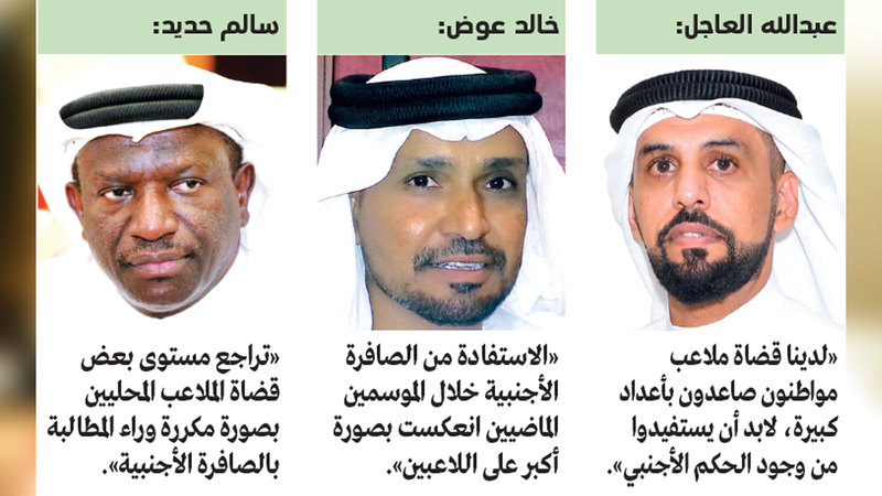 من جهته، أكد اللاعب الدولي السابق المستشار القانوني سالم حديد، أنه مع احترامه لقضاة الملاعب المحليين، إلا أنه يؤيد استمرار الاستعانة بحكام أجانب في الدوري الإماراتي، مشيراً إلى أن الأخطاء التحكيمية التي يقع فيها بعض الحكام المحليين تؤثر سلباً في نتائج فرق أخرى في بعض المباريات.