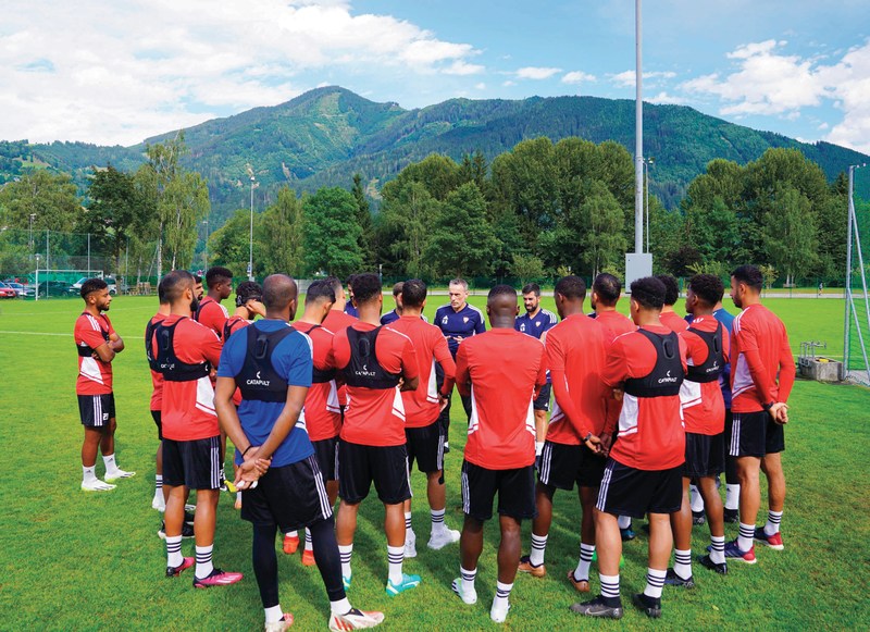 مدرب المنتخب بينتو يوجّه اللاعبين في معسكر النمسا. من المصدر
