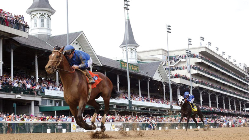 جانب من انتصار الجواد «كوديز ويش» في مايو الماضي بلقب سباق «شيرشل داونز ستيكس». من المصدر