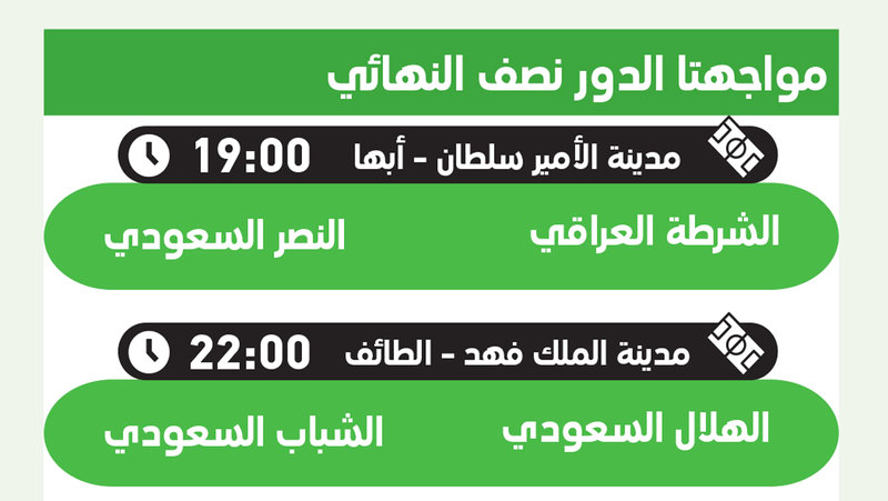 الشرطة يقف بين النصر والنهائي.. والشباب يصطدم بالهلال