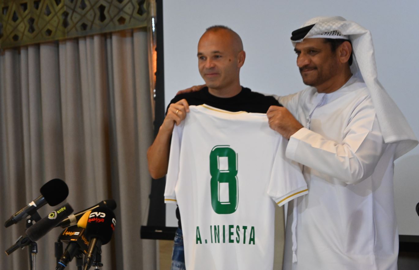 وقال إنييستا إن التعاقد مع «الصقور» صفحة جديدة في مسيرته الرياضية بعد ان مثل برشلونة ونادي فيسيل كوبي الياباني ويتطلع الى ان يحقق اهدافا عديدة مع نادي الإمارات، مؤكدا أنه يعلم مدى عشق أبناء الامارات لكرة القدم ويشعر بالسعادة لذلك، مبينا انه لم يستغرق وقتا طويلا لاتخاذه القرار المهم في مشواره الرياضي. وقال إنه اختار بنفسه اللعب مع نادي الإمارات بعد اتصال ورده من رئيس مجلس الإدارة يوسف البطران.