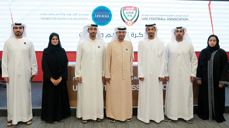 وقّع اتحاد الإمارات لكرة القدم، مذكرة تفاهم مع مركز «تريندز للبحوث والاستشارات» بهدف البحث والتعاون في المجالات ذات الاهتمام المشترك، وتبادل الخبرات المعرفية والبحثية التي تخدم المجتمع بشكل عام والرياضة على وجه الخصوص. وجرى توقيع مذكرة التفاهم الخميس الماضي في مقر اتحاد الكرة بدبي، بحضور محمد هزام الظاهري، الأمين العام لاتحاد الكرة، والدكتور محمد العلي الرئيس التنفيذي لمركز «تريندز للبحوث والاستشارات»، إلى جانب مديري الإدارات المختلفة في الاتحاد ومسؤولي المركز.