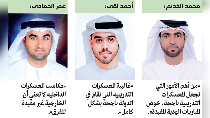 وفي هذا السياق، قال المحاضر الدولي في اتحاد كرة القدم عمر الحمادي: إن «المكاسب التي تحققها أندية الدرجة الأولى من خلال إقامتها معسكرات الإعداد داخل الدولة، أكثر فائدة من تلك التي تنظم خارج الدولة، وإن التجارب السابقة الناجحة تؤكد ذلك»، داعياً إلى استثمار الظروف الإيجابية التي توفرها إقامة المعسكرات الداخلية.