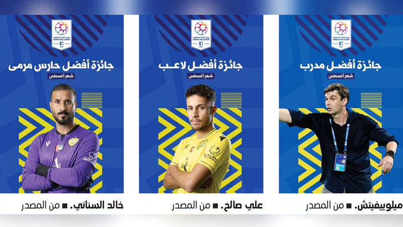 أعلنت رابطة المحترفين، أسماء الفائزين بجوائز الأفضل الشهرية لأغسطس، في دوري أدنوك للمحترفين، والتي شهدت تفوقاً لثلاثي نادي الوصل بعد حصول علي صالح على جائزة أفضل لاعب، وخالد السناني على جائزة أفضل حارس مرمى، وميلوش ميلوييفيتش على جائزة أفضل مدرب.