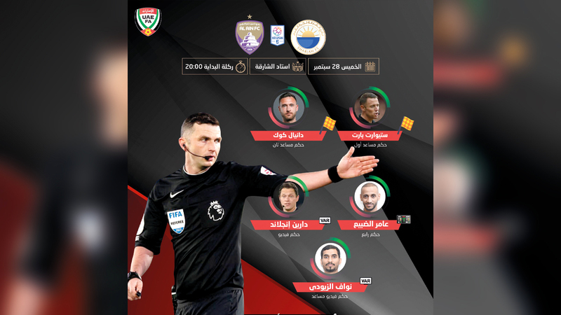 طاقم تحكيمي إنجليزي لمباراة الشارقة والعين. من المصدر