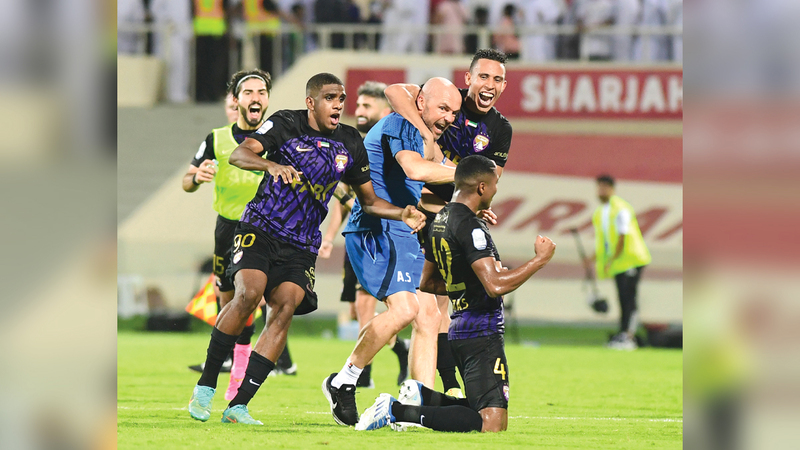 فرحة كبيرة لمدرب العين شرودر ولاعبي الفريق بعد الفوز المثير على الشارقة. من المصدر