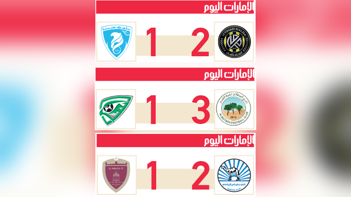 في المقابل استمرت معاناة حتا وتلقى الخسارة الخامسة على التوالي أمام مضيفه كلباء بنتيجة 2-1. وسجل هدفي كلباء السلوفيني أندريس فومبيرغر (22)، ثم زميله البرازيلي دانيل بيسا (1+45) من علامة الجزاء، بينما سجل أيمن رشوق هدف الضيوف الوحيد في الدقيقة (58).