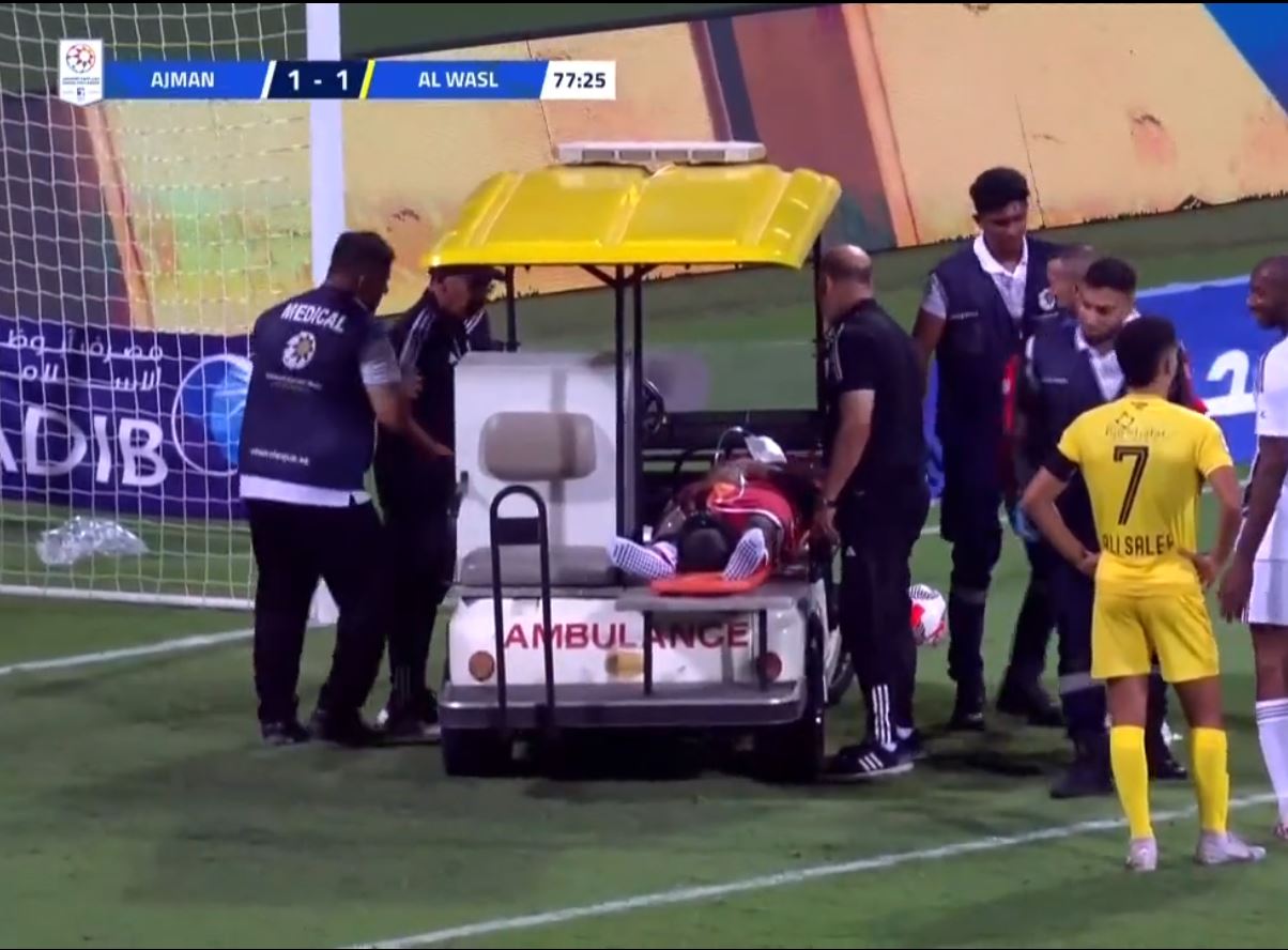نُقل حارس مرمى عجمان يوسف أحمد إلى احدى مستشفيات دبي، لتلقي الإسعافات اللازمة بعد أن تعرض لإصابة قوية خلال مشاركته مع فريقه في مباراة الوصل، والتي جرت اليوم السبت على ملعب زعبيل، وانتهت بالتعادل الإيجابي 1-1.