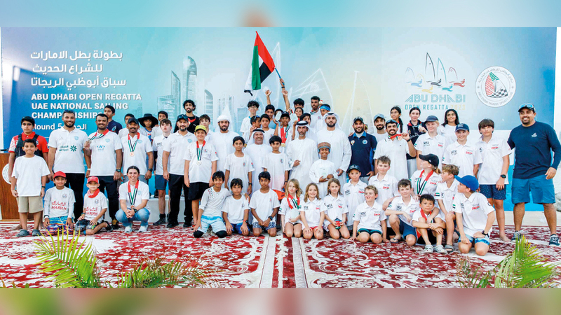 أبطال الإمارات في الشراع الحديث على منصة التتويج. من المصدر