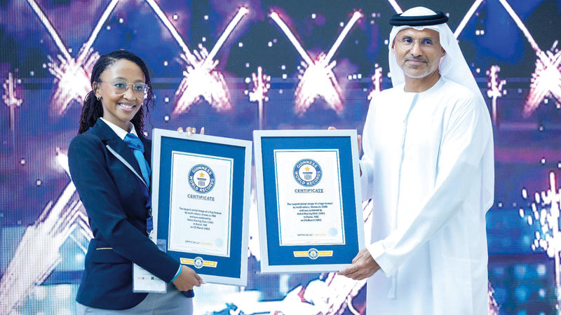 اللواء الدكتور محمد عيسى العظب، شهادتين لنادي دبي لسباق الخيل، من موسوعة «غينيس» للأرقام القياسية، الأولى لتسجيل أكبر عَلَم تم تشكيله بواسطة طائرات (الدرون)، والثانية لأكبر شعار تم تشكيله بطائرات (الدرون)، خلال أمسية كأس دبي العالمي 2023.