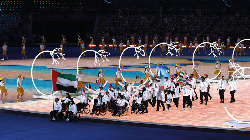 وتضمن حفل الافتتاح العديد من الفقرات الفنية على مدار نحو 90 دقيقة، فيما شارك كل من اللاعب بدر الحوسني (ألعاب القوى)، واللاعبة هيفاء النقبي (رفعات القوة) في رفع علم الإمارات خلال طابور عرض البعثات الـ44 المشاركة.