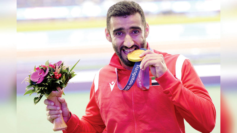 البطل محمد القايد يحصد الميدالية الذهبية الأولى للإمارات في الدورة. من المصدر