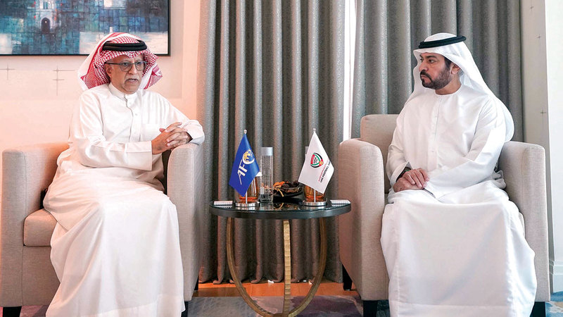 وتطرق اللقاء أيضاً للنجاحات الكبيرة التي تُحققها الكرة الآسيوية على مستوى المنافسات، واستضافة البطولات العالمية الكبرى، وارتفاع المستوى الفني للبطولات الآسيوية، التي باتت تحظى باهتمام إعلامي وتسويقي وحضور جماهيري كبير. حضر اللقاء النائب الأول لرئيس الاتحاد رئيس رابطة المحترفين الإماراتية عبدالله الجنيبي، وعضو مجلس إدارة اتحاد الكرة عبدالمحسن الدوسري، والأمين العام للاتحاد محمد الظاهري، والأمين العام للاتحاد الآسيوي داتو ويندسور، والأمين العام المساعد للشؤون الإدارية في الاتحاد الآسيوي وحيد كرداني.