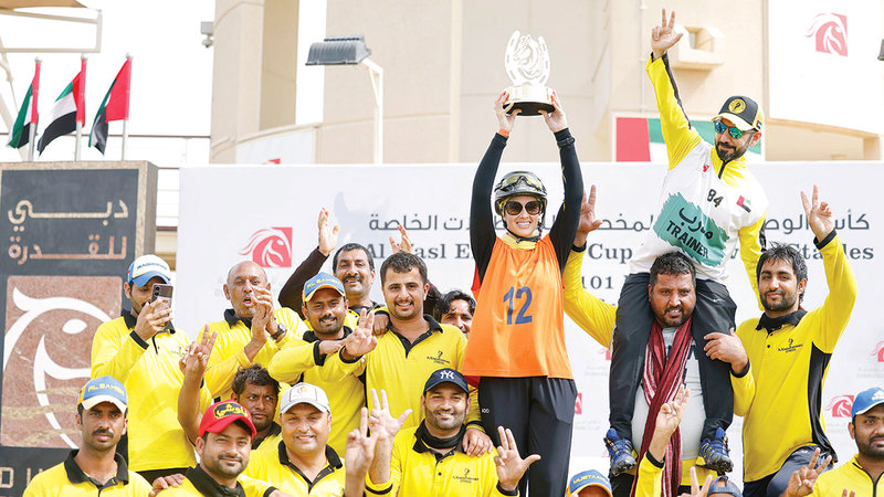 الفارسة ليلى المرزوقي ترفع «كأس الوصل». الإمارات اليوم