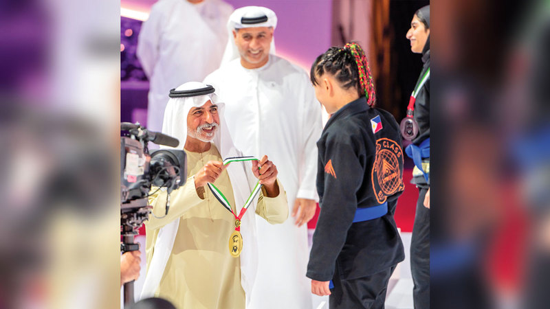 نهيان بن مبارك قلّد البطلات بالميداليات في بطولة أبوظبي العالمية لمحترفي الجوجيتسو. من المصدر