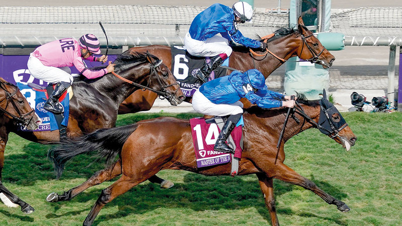 «ماستر أوف ذا سيز» و«موج» لـ«غودولفين» حلا أولاً وثانياً في سباق «بريدرز كب مايل». من المصدر
