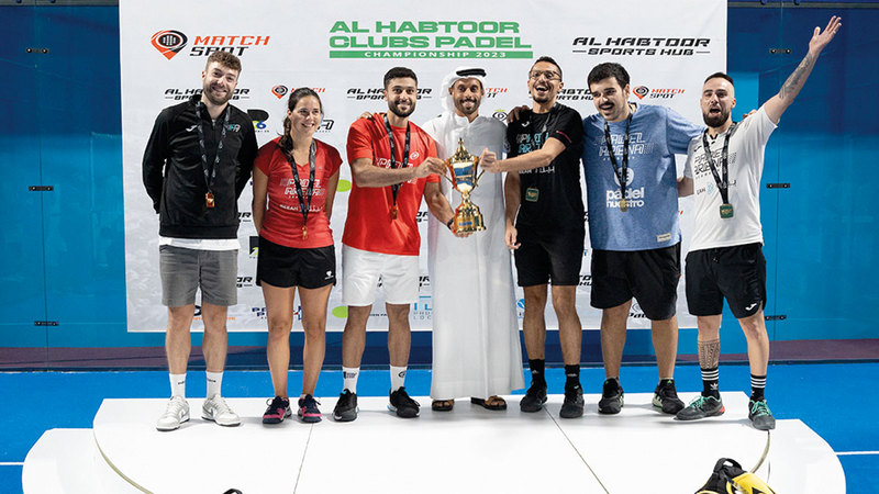 حبتور الحبتور يتوسط فريق بادل آرينا المتوج باللقب. من المصدر