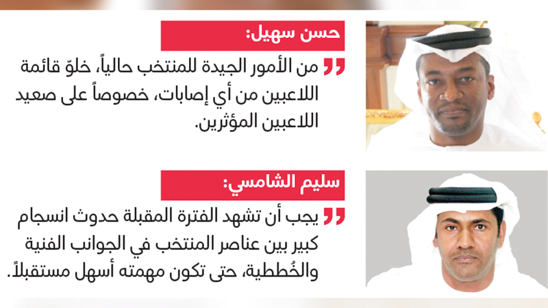 وقال العضو السابق في مجلس إدارة اتحاد الكرة، سليم الشامسي: «إن فرصة المنتخب كبيرة في التأهل للمونديال، خصوصاً في ظل النظام الجديد، بزيادة عدد مقاعد منتخبات آسيا، إلى جانب أن مدرب المنتخب بينتو يسير حالياً في الطريق الصحيح، من خلال العمل على الإعداد الجيد للمنتخب، وضرورة الاستقرار على طريقة اللعب والتشكيلة». وأضاف: «يجب أن تشهد الفترة المقبلة حدوث انسجام كبير بين عناصر المنتخب في الجوانب الفنية والخُططية، لأن هذا الأمر مهم للغاية لكي تكون المهمة أسهل في أي بطولة يخوضها مستقبلاً».