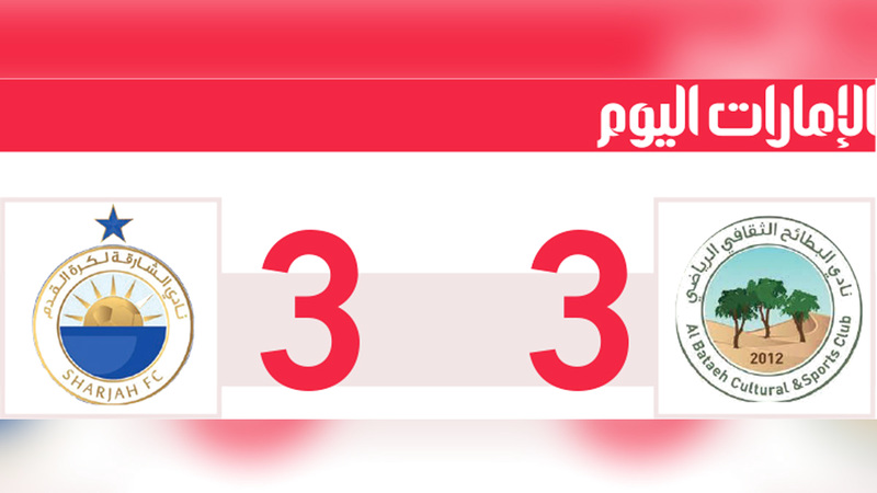 واستطاع الشارقة العودة، من خلال هدف تقليص الفارق بعد تسديدة لعبدالباسط محمد من خارج الصندوق، ارتطمت بقدم المدافع محمد أحمد، وغيرت اتجاهها، «39»، ثم أضاف لوان بيريرا ثاني أهداف الشارقة من ضربة رأس «45+3»، لينتهي الشوط الأول بهذه النتيجة. وجاء هدف التعادل للشارقة في الشوط الثاني، من ركلة جزاء نفذها بنجاح كايو لوكاس ليُعيد المباراة إلى نقطة البداية «51». وبنتيجة التعادل رفع الشارقة رصيده إلى 14 نقطة في المركز الرابع، كما قفز البطائح للمركز الخامس برصيد 12 نقطة.
