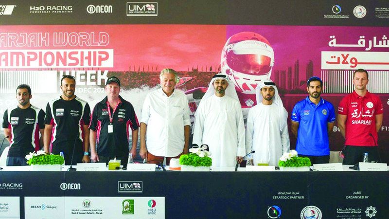 جانب من المؤتمر الصحافي للإعلان عن «جائزة الشارقة الكبرى» خاتمة جولات بطولة العالم للزوارق السريعة «الفورمولا1». من المصدر