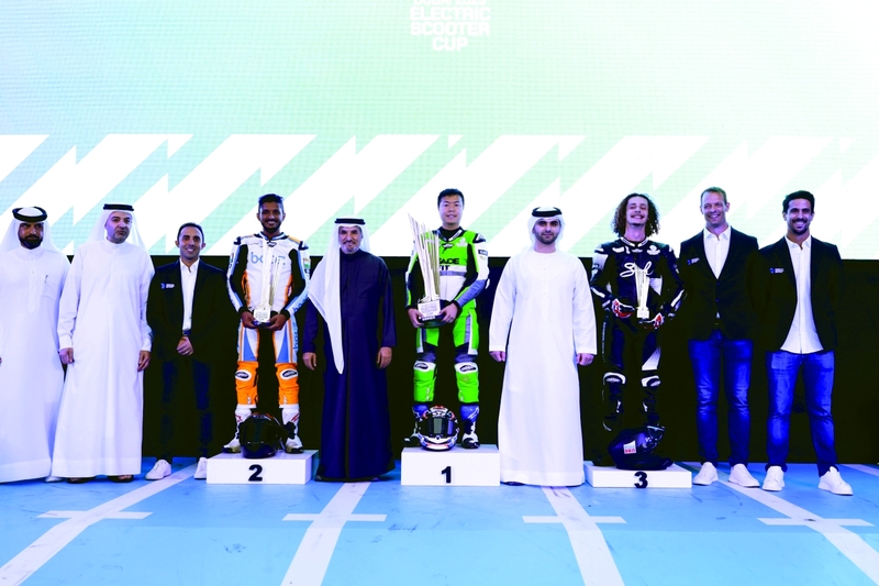 توج سمو الشيخ منصور بن محمد بن راشد آل مكتوم، رئيس مجلس دبي الرياضي الفائزين بالمراكز الثلاثة الأولى في النسخة الأولى من كأس دبي للسكوتر الكهربائية، حيث أحرز الياباني هيكاري أوكوبو من فريق «فايد فت» المركز الأول، وجاء أنيش شيتي من فريق بوز للسباقات في المركز الثاني، بينما حل السويسري ماتياس نييرو من فريق سوبر كار بلوندي ثالثاً.