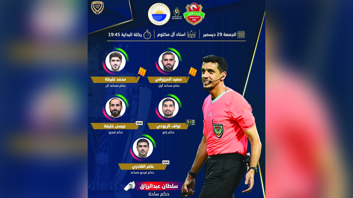 طاقم تحكيم مباراة السوبر بين شباب الأهلي والشارقة. من المصدر