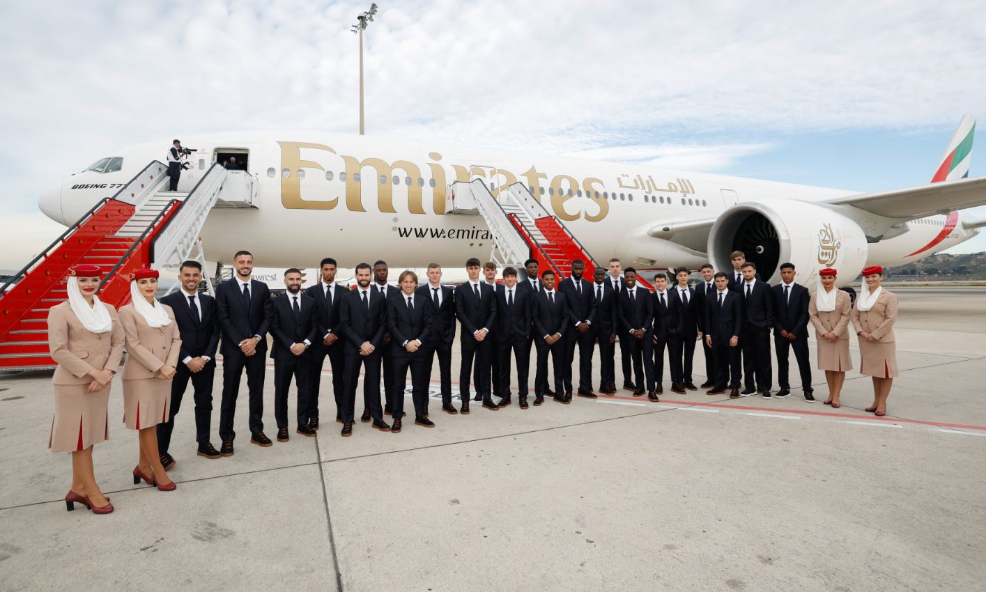 سيّرت طيران الإمارات، أكبر ناقلة دولية في العالم والراعي الرئيسي والرسمي لريال مدريد، رحلة خاصة قبل أيام نقلت الفريق الملكي بطائرة اقلعت من العاصمة الإسبانية مدريد واتجهت إلى العاصمة السعودية الرياض. وخاض ريال مدريد أمس نصف نهائي كأس السوبر الإسباني أمام أتليتيكو مدريد، وفاز بنتيجة 5-3.